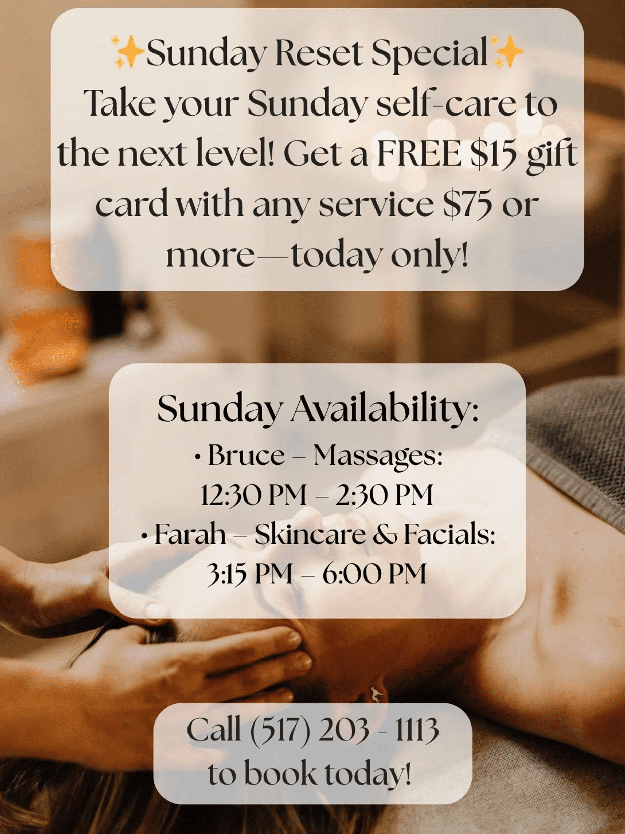 Please claim today’s deal at check-in, as this offer may not show on our booking site! Call (517) 203-1113